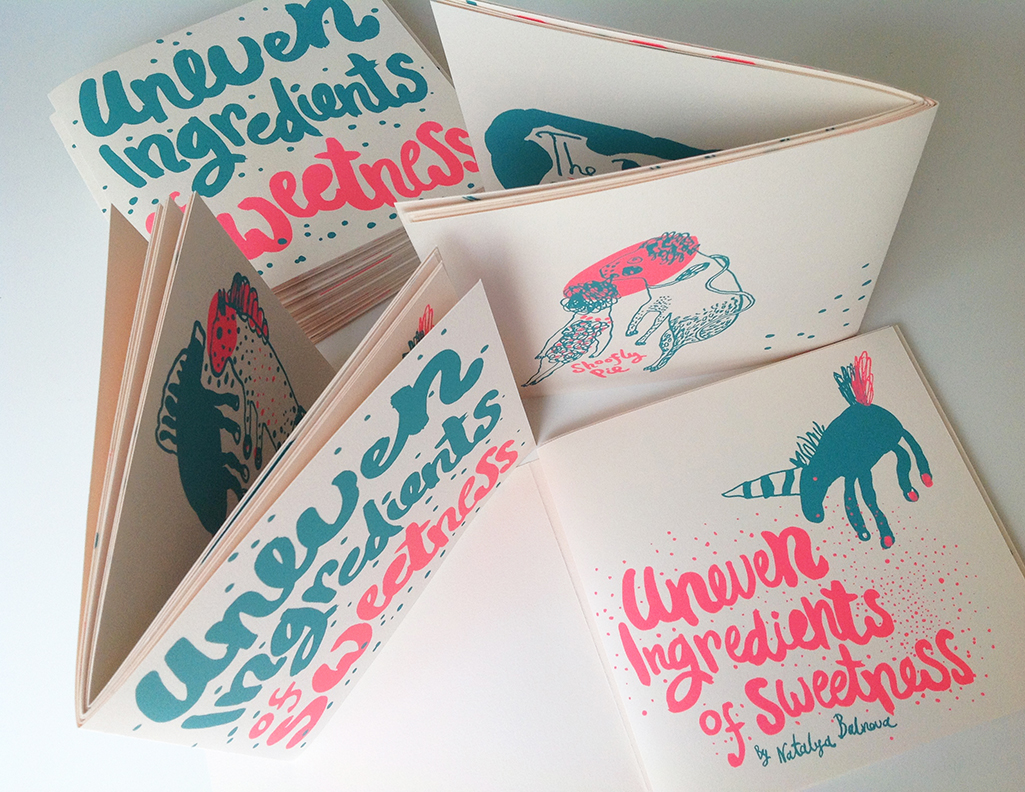 I came across the work of Natalya Balnova whilst researching for our group screen printing project, and immediately fell in love with her style. I think her choice of colours and regard for white space really lift her work off the page and help bring it to life, as the colours are both very flat and solid, yet weave between each other effortlessly. I also really like how simple the actual construction of the books are, as they are often secured with just a simple pamphlet stitch, which I think really echoes the feel she is trying to get across of simple yet precise.